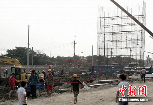 在施工現(xiàn)場(chǎng),記者看到,有一座鋼筋籠佇立在工地上,目測(cè)大概有10米左右高,“倒塌的那座‘鋼筋籠’比這座還要高半米左右,當(dāng)時(shí)有7-8個(gè)人正在上面扎鋼筋!惫さ厣系墓と烁嬖V記者,不知道為什么,鋼筋籠就倒塌了。但也有工友表示,因?yàn)殇摻罨\的鋼筋質(zhì)量不合格,工人們當(dāng)時(shí)正在拆除。