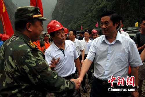 中新網(wǎng)綿竹8月17日電(王超)17日下午13時(shí)50分許,中共四川省委書(shū)記劉奇葆、副書(shū)記李崇禧,副省長(zhǎng)鐘勉帶隊(duì)查看小崗劍道路搶通現(xiàn)場(chǎng),親切慰問(wèn)了在場(chǎng)搶險(xiǎn)的公安、消防、武警、省路橋公司等單位代表。