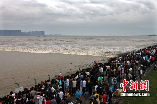 中新網(wǎng)杭州9月25日電(見習(xí)記者 沈蘭)“八月十八潮,壯觀天下無”。今天是農(nóng)歷八月十八,錢塘江今日出現(xiàn)8年來最大潮涌。在杭州蕭山錢塘江畔,8萬人如約觀看錢江潮涌盛況。