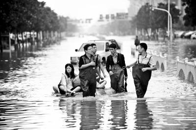 救災(zāi)辦工作人員告訴北青報記者,救災(zāi)物資現(xiàn)在還比較充裕,前天剛接收了7000箱礦泉水,運(yùn)輸問題成為難點(diǎn)。很多道路不暢通,一部分是因?yàn)榉e水過多,一部分因避災(zāi)車輛、拋錨的故障車阻塞立交橋,車輛無人認(rèn)領(lǐng)。對這種車輛,首先從交警處聯(lián)系車主,實(shí)在沒有辦法的用拖車拖到路邊。另外,部分受災(zāi)區(qū)域積水深度也很尷尬,“70厘米的水深,沖鋒舟、皮劃艇都駛?cè)氩涣耍俗哌M(jìn)去又全都濕透!