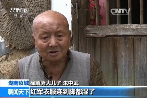 徐解秀大兒子朱中武:我媽媽看到這個天氣下雪下雨,紅軍衣服都濕了,進(jìn)屋來就趕快燒起水給她們洗腳、洗澡,燒好水以后就煮飯給她們吃。