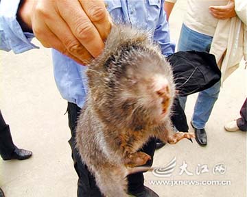 22日凌晨,南昌市衛(wèi)東花園1期的保安室闖進(jìn)來一位“稀客”,它嘴巴像豬、牙齒像兔、爪子像老鼠,全身灰黑色長皮毛,身長約30厘米。這樣一個(gè)小動物頓時(shí)就成為了小區(qū)里的“小明星”,可駐足觀看的居民都叫不上它的名字。