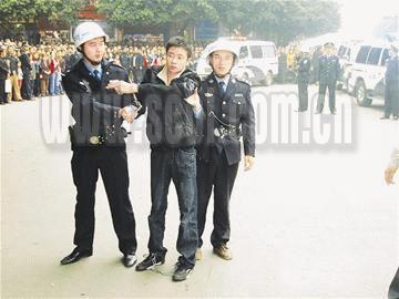 上午11時(shí)許,在雅安的兩名犯罪嫌疑人出現(xiàn)在市區(qū)西門(mén)汽車(chē)站外的路口,同行的還有4名年輕女子。當(dāng)時(shí),幾人正在路旁等車(chē),周?chē)嚯x內(nèi)正好沒(méi)有行人經(jīng)過(guò)。見(jiàn)抓捕時(shí)機(jī)成熟,4名早已蹲守在此的便衣民警突然沖向兩名犯罪嫌疑人。兩人還沒(méi)來(lái)得及作出反應(yīng),就被民警按倒在地。回過(guò)神來(lái)后,他們拼命反抗。幾分鐘后,兩人被民警制服。