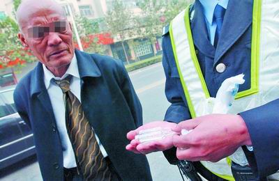專門用廉價藥水碰瓷騙錢的“老干部”孫某栽了。昨日,打著領(lǐng)帶、穿著皮鞋的孫某故伎重施時,被人發(fā)現(xiàn)報警。