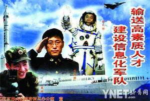 昨天記者在市征兵辦公室看到,這幅即將要刊登的征兵公益廣告畫面為一穿著新式軍裝的女軍人,主題口號(hào)為“一人當(dāng)兵全家光榮一次服役終身受益”。記者從已經(jīng)刊登出的三次征兵公益廣告畫面中看到,繼雷鋒、黃繼光等革命英雄擔(dān)任我國軍人的形象代言人后,航天英雄楊利偉、北大學(xué)子兵高明等則成為我國現(xiàn)代高素質(zhì)軍人的形象代言人。