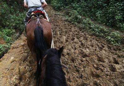 按這里的規(guī)矩,如果你之前沒有騎過馬,馬主人會慫恿你請一個養(yǎng)馬人領馬,這樣做的確是“為了你的安全”,可加上領馬人自然就多了一匹馬,而這匹領馬的費用與我們租用一匹馬的費用相同,同樣也由游客承擔。當日,我們與一名養(yǎng)馬的女主人談定價格準備騎馬上山時,忽然風雨大作,眼看本來泥濘的馬道積滿了更多的雨水,大家只好掃興地放棄騎馬上山的打算。