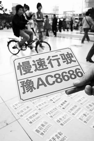 一在鄭打工的農(nóng)民工自制個性車牌,希望政府部門能借鑒他的創(chuàng)意,對電動車實(shí)施掛牌管理。