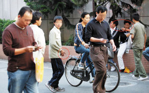 記者發(fā)現(xiàn),這些小青年七八人為一個(gè)小團(tuán)隊(duì),每個(gè)人手里都有一疊厚厚的小卡片,他們大多身材瘦小,衣著破舊,臉和頭發(fā)都顯得很臟,但從他們略顯稚氣的臉上可以看出他們的年齡都不大,約在十五六歲左右。如果行人主動(dòng)伸手索要這些卡片,小青年便會(huì)一哄而上將自己手中的卡片全部送出,而如果行人表現(xiàn)出不感興趣,他們甚至?xí)哌^(guò)去粗魯?shù)貙⒖ㄆM(jìn)對(duì)方的懷中。