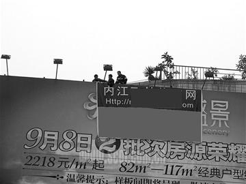 昨日上午9時許,內(nèi)江西林大橋橋頭,川糧賓館一程姓工作人員突然發(fā)現(xiàn),一青年男子正站在附近一高樓外墻巨幅廣告牌上,利用手中的擴(kuò)音喇叭大聲喊:工作失意,一死了之。由于西林大橋宛如紐帶連接內(nèi)江東興區(qū)、市中區(qū)兩區(qū),為內(nèi)江城區(qū)交通要沖和繁華地段,再加上男子手握擴(kuò)音器喊話,一時間眾多居民都被吸引了過來。程女士撥打了110、119,幾分鐘后,西林派出所民警和內(nèi)江市消防支隊的戰(zhàn)士都趕到了現(xiàn)場。