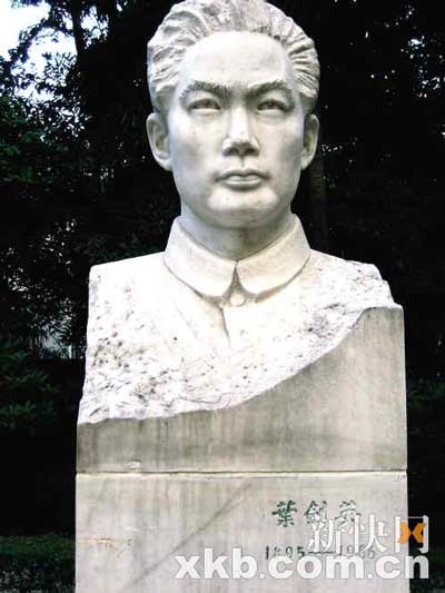 隨后,記者又來(lái)到距離正門(mén)門(mén)樓不遠(yuǎn)處的空闊處,找到了用白玉石建造的葉劍英元帥半身正面石雕。它與聶榮臻等七位先烈的石雕相伴,石雕基座卻刻著:葉劍英(1895——1986),把葉劍英元帥人為地“增大”了兩歲。