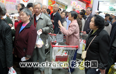 昨天(11月14日)是工作日,因此排隊(duì)的人群中少見年輕人。老人們不但擠在低價(jià)油的商品區(qū),還堵在出口處服務(wù)臺(tái),參加同時(shí)展開的抽獎(jiǎng)活動(dòng)。之后,400多桶食用油在1個(gè)多小時(shí)內(nèi)銷售一空。