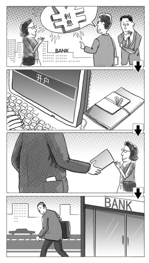 孫先生稱,妻子教課的班上有一名旁聽生張宇(化名),兩人平時關(guān)系不錯。今年3月,張宇建議楊女士到工行存款理財,通過張所在單位辦理,兩年后可以得到“較高的利息”。由于是“集體業(yè)務(wù)”,楊女士不能自己辦理,要將身份證給張讓其代辦,但存折戶名保證是楊女士的。