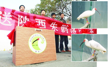 11月18日清晨,來自我省洋縣的兩只朱鹮從西安咸陽國際機(jī)場出發(fā),在省出入境檢驗檢疫局監(jiān)管下,被包機(jī)護(hù)送至上海后轉(zhuǎn)機(jī)飛赴日本。這是洋縣的朱鹮第三次告別生養(yǎng)自己的故鄉(xiāng),落戶日本國土。