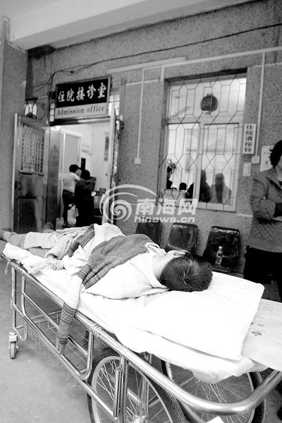 卓桂平老人告訴記者,他23歲的兒子卓尚輝,是從部隊(duì)退伍回來的,身體非常健康。后來受不良朋友影響,開始吸食毒品,今年5月19日被送進(jìn)海口秀英區(qū)公安局強(qiáng)制戒毒所戒毒。昨天他接到戒毒所電話稱兒子病了,要求家屬來戒毒所。他們馬上從萬寧趕到?冢胖纼鹤颖蝗舜虻谜静黄饋砹。“我們把癱瘓的兒子從戒毒所抬到省人民醫(yī)院后,要求戒毒所墊付醫(yī)藥費(fèi)押金,但是他們不肯,就這樣從早晨9點(diǎn)拖到現(xiàn)在,人還躺在醫(yī)院門口!弊抗鹌嚼先苏f。