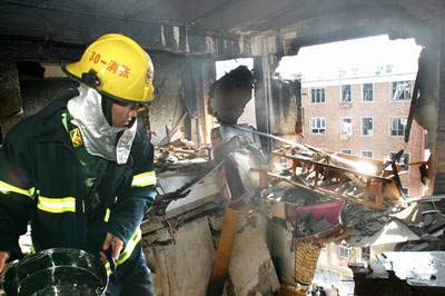 更讓人觸目驚心的是樓內(nèi)的爆炸現(xiàn)場,據(jù)進(jìn)入現(xiàn)場的消防人員介紹,整個(gè)五六層幾乎被炸穿了,其中,502室已與602室貫穿,603室的樓板坍塌,7樓一間屋內(nèi)的樓板也出現(xiàn)突起。四樓幾家住戶的防盜門也均被炸飛到屋內(nèi)。