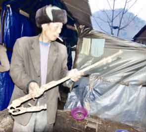 24日,考察小組有了件無(wú)意中的收獲——他們得知:剛剛進(jìn)入里叉河修建管護(hù)所微型電站的工人,在樹(shù)林中挖坑時(shí),竟然挖到一支步槍。該槍銹跡斑斑,只剩下金屬部件,但可以大致確認(rèn)出各部分尺寸。