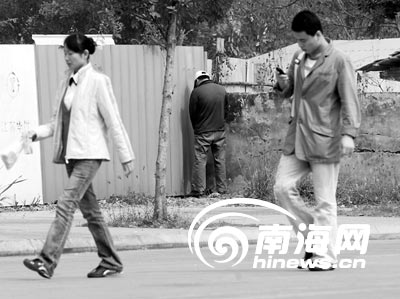 3日下午13點(diǎn),記者來(lái)到39路車海經(jīng)院總站,站內(nèi)?恐奈遢v公交車。車站右側(cè)路邊有一施工工地,工地的圍墻外距離車站約100米的地方,正對(duì)著寬闊的大街,而該處的地面和墻面上卻清晰可見(jiàn)小便后的痕跡。一位過(guò)路的學(xué)生告訴記者,這里簡(jiǎn)直成了“公共廁所”,時(shí)而有一些司機(jī)和行人來(lái)小便,對(duì)此他已感覺(jué)“習(xí)以為!。到了下午1點(diǎn)04分,記者看到一名30歲左右的公交車司機(jī),從車上走下,沿著街邊的圍墻一路走,當(dāng)走到這一位置的時(shí)候,他就開(kāi)始小便,完全沒(méi)有注意到他身后來(lái)來(lái)往往的行人。記者在現(xiàn)場(chǎng)拍照時(shí),剛剛拍到他的背面,該司機(jī)便離開(kāi)了。