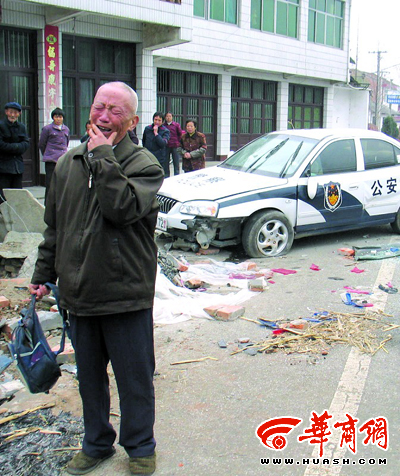 濤濤的雙親常年在外務(wù)工,他一直和爺爺奶奶生活,每天放學(xué)后爺爺都會(huì)去路上接他。12月3日下午3時(shí)許,王興舉老人朝孫子回家的方向趕去時(shí),一輛警車(chē)從316國(guó)道由西向東駛過(guò),汽車(chē)駛出幾十米后突然斜著沖到對(duì)面車(chē)道,并撞在馬路旁的花壇上!疤膳铝耍 碑(dāng)時(shí)正在馬路對(duì)面的村民王新強(qiáng)說(shuō):“警車(chē)撞到花壇后便一連側(cè)翻了3個(gè)跟頭,才落在約十余米以外的路邊。”這時(shí),他才發(fā)現(xiàn)背著書(shū)包沿馬路邊回家的濤濤已倒在血泊里。
