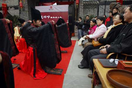 孩子什么時(shí)候才算是長(zhǎng)大成人了?對(duì)現(xiàn)代人來(lái)說(shuō),“長(zhǎng)大”是個(gè)相對(duì)模糊的概念,因而對(duì)承擔(dān)起家庭和社會(huì)的責(zé)任也沒(méi)有一個(gè)相對(duì)準(zhǔn)確的時(shí)間概念。然而在清代以前,我國(guó)的漢族文化中就有一個(gè)準(zhǔn)確的界定,女孩長(zhǎng)到15歲、男孩長(zhǎng)到20歲就要行成人禮。昨天上午,在文殊坊,這種已經(jīng)消失300余年的漢族成人禮被我市熱衷于漢文化的市民再度拾起,20個(gè)15歲到20歲的年輕男女在這里隆重地舉行了他們的成人禮。對(duì)許多人來(lái)說(shuō),這次成人禮似乎更像一種游戲,但參與者卻認(rèn)為,這次成人禮將改變他們的人生態(tài)度。