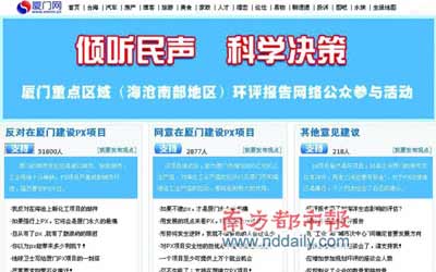 12月8日,廈門網(wǎng)忽然開放了一個投票平臺,名為“環(huán)評報告網(wǎng)絡(luò)公眾參與活動”,里面明確列出支持或反對PX項目建設(shè)的選項,還可以進(jìn)入一個專門的論壇發(fā)表自己的看法。