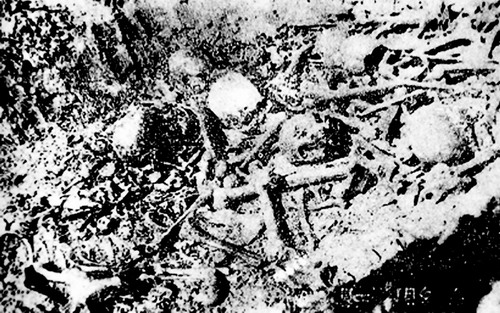 不到3天,這個甲近200人被殺了,其中還有不少是外地逃難的難民。在他家附近的一條廢堤上,日軍先后強(qiáng)迫200多個老百姓跪倒在地,然后架著機(jī)槍掃射,大部分的人被殺掉了。