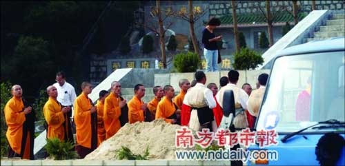 從昨天下午2時(shí)30分起,近50位僧人道士就一直在墓地現(xiàn)場(chǎng)念經(jīng)。