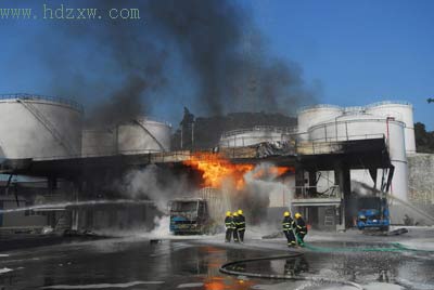 緊接著,10多名頭戴安全帽、身著便服的工人跑了出來,他們打開了庫區(qū)里的消防栓,沖向槽車附近滅火。據(jù)消防支隊(duì)有關(guān)人士介紹,小張所說的這些工人是港豐石化公司的專職消防隊(duì)員;馂(zāi)發(fā)生后,隊(duì)員們立即啟動(dòng)儲(chǔ)罐冷卻噴淋系統(tǒng),降低事發(fā)附近儲(chǔ)罐發(fā)生燃燒的可能。