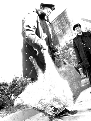 去年11月中旬,一頭大野豬帶領10多頭小野豬,穿過籃球場北面柵欄,跑到10幢那里,被屈起運發(fā)現,當時他跟另外一個同事在巡邏,手上沒帶鐵棍,兩人不敢上前追,只是用手電筒照了照,這群野豬怕人,跑了。12月28日凌晨一點左右,屈起運又在籃球場碰到一頭100多斤的野豬。