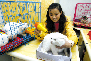 渝中區(qū)一名在證券公司上班的女白領(lǐng),辭掉3000元月薪后回家租房伺候收養(yǎng)來(lái)的19只流浪貓狗,平時(shí)靠在網(wǎng)上賣貓糧狗糧和給別人洗貓狗的收入來(lái)維持開支。昨天,當(dāng)石橋鋪一家證券公司以4000元的月薪請(qǐng)她“出山”時(shí)遭其拒絕。