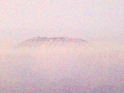 登上蘭山頂后,志愿者共同敲響了新年鐘聲,并在蘭山鐘院等待日出。由于時處清晨,蘭州城區(qū)被一層薄霧籠罩著,唯有潺潺的黃河在霧氣中忽隱忽現(xiàn)。恰在此時,志愿者李建強(qiáng)突然發(fā)現(xiàn)蘭州市區(qū)的上空多了個小島。大家定睛一看,果然有一個小島漂浮在市區(qū)上空。隨行的志愿者趕快拍下了這一幕。在照片的中央,一個小島橫埂在上面,山尖上的日出慢慢透出了光亮。10余分鐘后,“小島”上的日出消失,蘭州市區(qū)又被霧氣籠罩,海市蜃樓慢慢消失。半個小時后,太陽才從遠(yuǎn)處的山坳里露出了“臉”,將新年的第一屢陽光撒向蘭州市區(qū)。