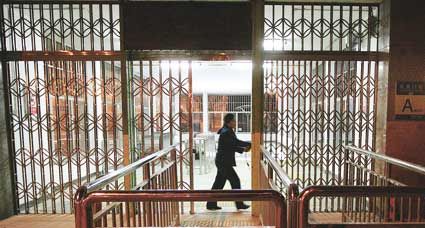 記者4點(diǎn)30分趕到東直門地鐵站A口,此時可以看到里面已經(jīng)燈火通明。4點(diǎn)55分,檢票員胡女士打開滾梯欄桿鎖,然后啟動滾梯,隨后把鐵門打開。伴隨著“嘩啦嘩啦”的聲音,東直門地鐵的大門經(jīng)過23天的封站終于重新向市民開放。