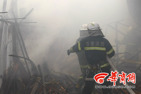 據(jù)現(xiàn)場(chǎng)的一位消防隊(duì)官員介紹,發(fā)生火災(zāi)后,接到市民及時(shí)報(bào)警的西安市消防支隊(duì)十大隊(duì)迅速趕至現(xiàn)場(chǎng),進(jìn)行了財(cái)產(chǎn)的搶救工作。但由于火災(zāi)太大,十大隊(duì)向市支隊(duì)請(qǐng)求支援,西安市共有7支大隊(duì)參加了救火工作。