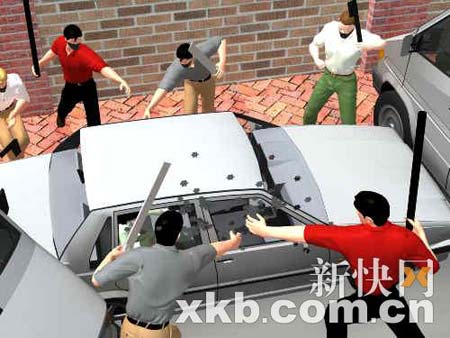 據(jù)自稱在遠(yuǎn)處目擊了事發(fā)經(jīng)過的市民稱,當(dāng)時(shí)前后兩車內(nèi)沖出6名蒙面男子,其中兩人手拿利斧、兩人手持砍刀、兩人拿著木棍。拿斧頭的兩男子對(duì)著豐田轎車的輪胎一陣亂劈,將輪胎砍破,拿木棍的男子則對(duì)著車窗玻璃猛擊,車窗玻璃被敲碎,另兩名男子拿著砍刀架在了車內(nèi)人員的脖子上。