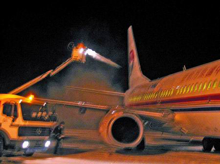 12日夜至13日凌晨,抓住老天爺休息的一小會(huì)兒,機(jī)場(chǎng)積極“反攻”,展開有史以來(lái)最大一次“破冰”作業(yè),本報(bào)記者對(duì)此進(jìn)行了全程追蹤。