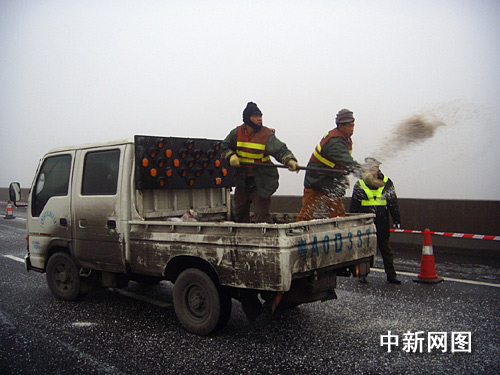 上午8點(diǎn),冰霜再次在京珠北北行41公里處出現(xiàn),京珠交警部門隨即將所有北行車輛緊急截停,惡劣天氣緊急處置預(yù)案再度啟動。公路維護(hù)部門對結(jié)冰橋面多次拋灑工業(yè)鹽實(shí)施溶冰作業(yè),交警和路政部門在結(jié)冰路段擺設(shè)錐筒,減少車道,控制行車速度,并在云巖坡頂實(shí)施間斷放行等交通管制,同時利用警車壓道和短暫分流等方式疏導(dǎo)現(xiàn)場滯留車輛,緩解交通壓力。最終,長達(dá)3公里的車龍在警車的帶領(lǐng)下安全的駛離了危險地帶,連續(xù)兩天,沒有重特大交通事故和嚴(yán)重車輛堵塞出現(xiàn)。