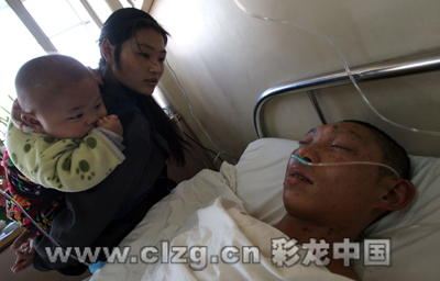 “我問他認(rèn)不認(rèn)得我,他說認(rèn)得,他會沒事的。”昨天上午,29歲的郭春艷帶著1歲半的小女兒守在丈夫的病床邊,擔(dān)心不已。她的丈夫尹家敏13日凌晨在云天化國際化工股份有限公司三環(huán)分公司硫酸廠的爆炸事故中受傷,被送到了昆醫(yī)附二院燒傷科。