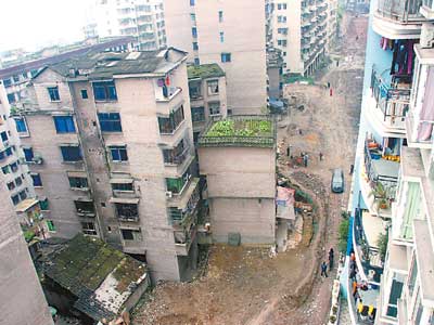 而忠州鎮(zhèn)州屏路二巷6號(hào)房主楊某與妻子唐某,卻并不認(rèn)同這種補(bǔ)償方式,開(kāi)出了百萬(wàn)巨額賠償。因?yàn)榻袃r(jià)沒(méi)有得到滿足,兩口子拒絕搬遷。2007年,所有拆遷工作結(jié)束,周圍的鄰居都搬走了,道路也挖到了他們家門口,但兩口子仍然不肯離開(kāi)。