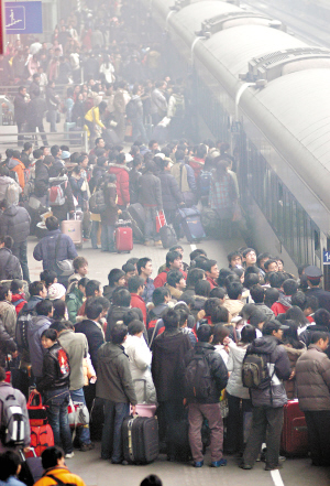 1月13日,安徽蕪湖安徽師范大學(xué)外國語學(xué)院大三學(xué)生冷靜(音)在蕪湖火車站在擁擠的人流中被擠下站臺,被還沒來得及停穩(wěn)的火車當(dāng)場軋死。1月14日,湖南長沙百余有票學(xué)生被趕下火車,半天沒人理睬,事后解釋原因是列車超載造成學(xué)生沒能上車。
