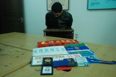 昨天上午,記者在合作路派出所內(nèi)見到了正在接受審訊的賈某。據(jù)其交代,他辦有大量的辦公證件,其中包括高速公路交警總隊的警察證(上注一級警司)、河北省交通廳督察證、河北省某新聞單位的工作證以及綠色中國網(wǎng)絡電視的采訪證。同時,辦案民警從其駕駛的一輛藍鳥轎車上還搜出了元氏縣委、省交通廳、省人民檢察院等政府機關(guān)的出入證,以及綠色中國等新聞單位的采訪標牌。