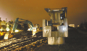 附近青城豪生國(guó)際酒店一位自稱(chēng)酒店的工作人員說(shuō),軌道是17日晚11時(shí)被敲斷,只剩下3個(gè)水泥柱。但具體是誰(shuí)敲斷的,他并不知道。