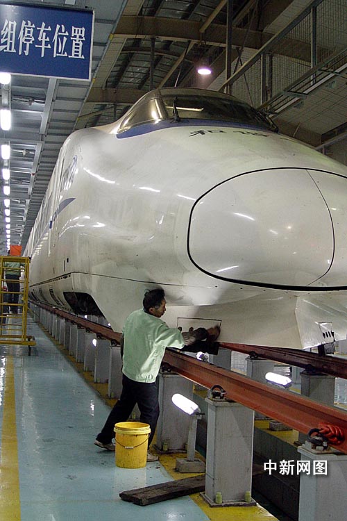 記者看到,在“CRH2—014A”動車前,十六名保潔工正對車體進行“洗澡”清潔,機務段的師傅對車輪和制動裝置進行“體檢”檢修,客運段的姑娘們也開始對車廂進行“美容”。