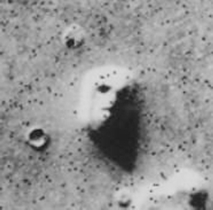 “火星之臉”照片上世紀(jì)70年代曾在科學(xué)界和科幻迷中引起了巨大的激動,因?yàn)椤盎鹦侵槨笨雌饋砭拖袷且活w抬頭仰望夜空的碩大人頭。不過后來拍到的新火星照片證實(shí),“火星之臉”只不過是一塊普通的火星巖石而已,只是由于特殊拍攝角度的光學(xué)錯(cuò)覺才形成了人臉形狀。