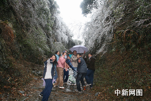 中新網(wǎng)韶關(guān)1月27日電(馮昶 李凌 朱祖純)因受北方強(qiáng)冷空氣連日來(lái)不斷向南推進(jìn),一夜冰雪把地處嶺南素有中國(guó)“四大”賞梅勝地之一的粵北南雄市梅關(guān)古道裝扮得銀裝素裹,格外妖嬈。昨今兩天,適逢雙休假日,來(lái)自四面八方的游人相爭(zhēng)訪古道,踏冰雪,上雄關(guān),賞香梅,盡情領(lǐng)略傲雪品梅的情懷。