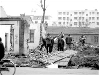 在縣城人民路和前進(jìn)路旁邊的兩個(gè)院落內(nèi),拆遷正在進(jìn)行中,一排排房子已經(jīng)夷為平地。但也有23處房屋因?yàn)橹魅藳](méi)有簽字,還在廢墟中寂寞地堅(jiān)挺著。