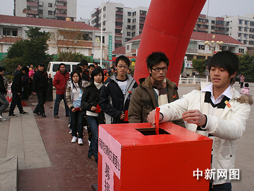 發(fā)表評論 中新網(wǎng)韶關(guān)2月10日電 (馮昶 朱祖純 曾誠) 大年初三,廣東南雄市三影塔景區(qū)廣場內(nèi)人流涌動,一場聲勢浩大的“我與災(zāi)民心連心”募捐活動正在舉行,來自各條戰(zhàn)線的干部、企業(yè)等數(shù)千人紛紛伸出援助之手。引人注目的是一批當?shù)卦谕獯蚬さ那嗄耆、學(xué)生和社團組織自發(fā)捐款,用真情表達對今年冰雪災(zāi)區(qū)民眾的一片愛心。