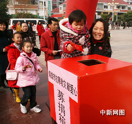 南雄市借助春節(jié)人們團聚的機會,利用電視、公益告示、宣傳車等各種宣傳渠道,廣泛發(fā)動社會各界力量,開展“我與災(zāi)民心連心”募捐活動,以各種形式為災(zāi)區(qū)送溫暖獻愛心。