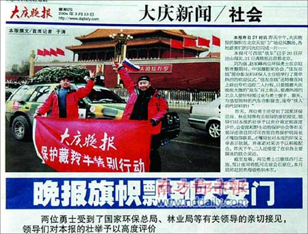 央視頒獎典禮過后的同個月底,“金鏡頭”開始評選,劉為強(qiáng)沒有報(bào)名參選。但《南方日報(bào)》攝影記者郎樹臣的一幅名為《藏羚羊穿越青藏鐵路》的參賽照片,讓大家想起了劉為強(qiáng)。兩張?jiān)谕粋地方拍攝,主題也相同,不同的是,郎的照片是在鐵路橋上俯拍,“有羊沒車”。