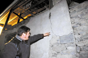 地震發(fā)生后,康定縣城、姑咱鎮(zhèn)等地震感強烈,城郊普遍出現(xiàn)民房裂縫、室內(nèi)物件掉落、圍墻倒塌和滾石現(xiàn)象,折多塔地區(qū)部分村民房屋出現(xiàn)裂縫。部分正在熟睡的居民被驚醒后紛紛逃到戶外避震。
