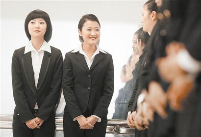 之前在外企工作的唐娜告訴記者,平常都是看到熟人時才笑,現(xiàn)在必須對視線范圍內(nèi)的每個人微笑,直到練成條件反射。而且要露出八顆牙齒,露少了不真誠,露多了不好看。很多同學(xué)都咬著筷子練習(xí),笑得臉都僵了!皣H標準微笑就是露出8顆牙齒,‘奧運空乘’代表國家形象,你可以不用精通各國語言,但你可以用端莊大方的微笑展示我們的熱情!