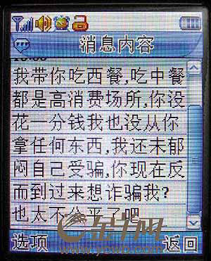 在網(wǎng)上,阿丹不斷給呂××發(fā)質(zhì)問(wèn)信息,之前曾說(shuō)深?lèi)?ài)阿丹的呂××卻開(kāi)始顯得有些不耐煩。2月6日晚11時(shí)許,阿丹發(fā)短信質(zhì)問(wèn)呂××是否在欺騙感情,××網(wǎng)上的交友信息是否也一直在發(fā)布。對(duì)方回復(fù)稱(chēng)“不明白你在說(shuō)什么”。